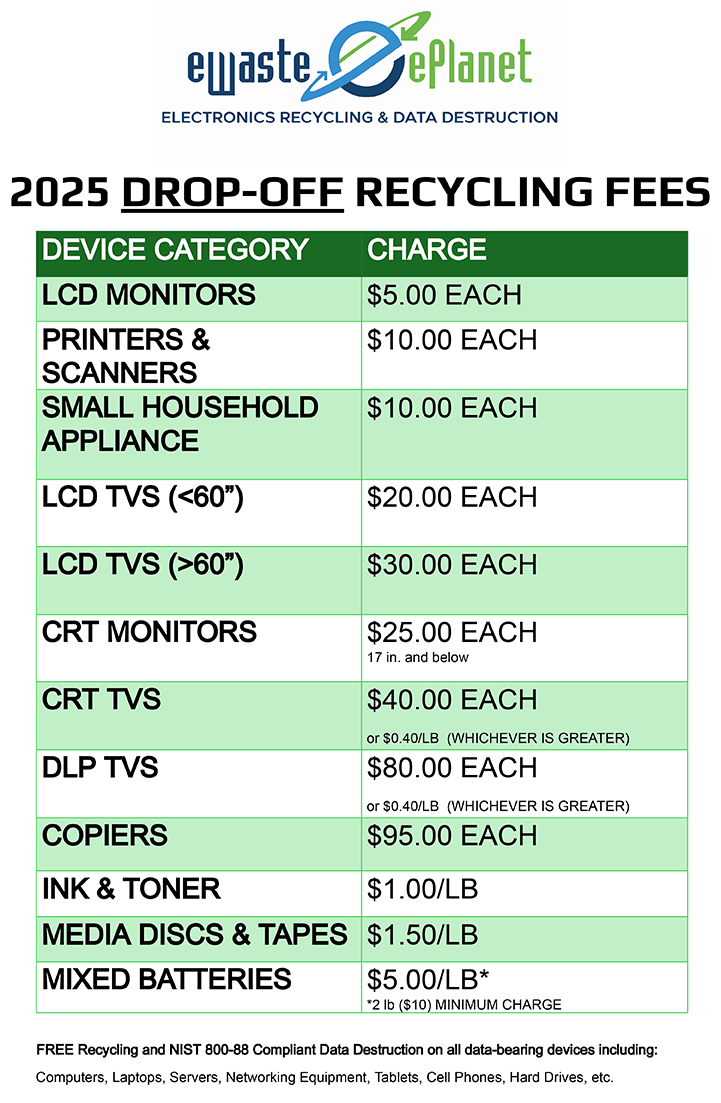 If you are a business, please reach out for a quote specific to your total equipment mix! We are typically able to waive any potential recycling fees for most commercial pickups!
